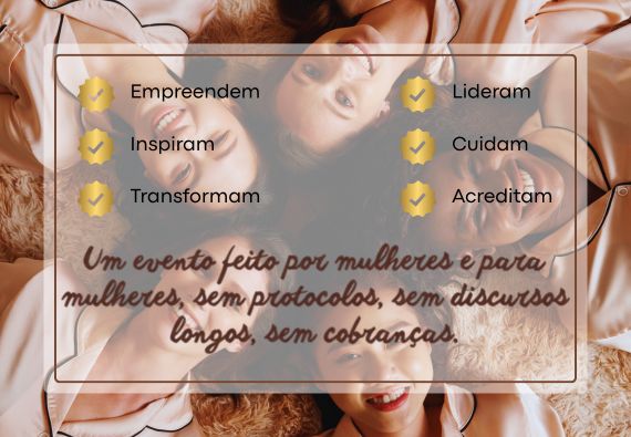 Uma oportunidade de estarmos juntas, celebrando conquistas, compartilhando histórias e renovando a energia para seguir transformando nossos espaços na vida, nos negócios e na sociedade.